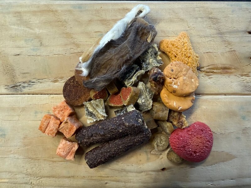 What treats might you get? You will receive treats from a selection. All the treats are grain free and natural. Contents may vary due to availability.